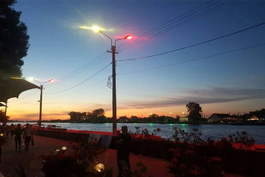 The Sulina Waterfront (promenade) is approximately five (5) km long. It starts at Mile 2 and, alongside the typical houses in blue and green, the path is interrupted by new constructions (mostly hotels and accommodations) until reaching the old center of the town.