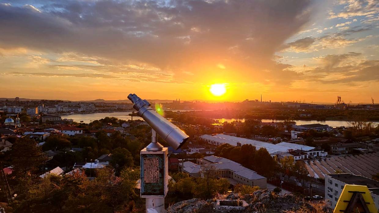Un apus minunat în orașul Tulcea din Delta Dunării, aseară.